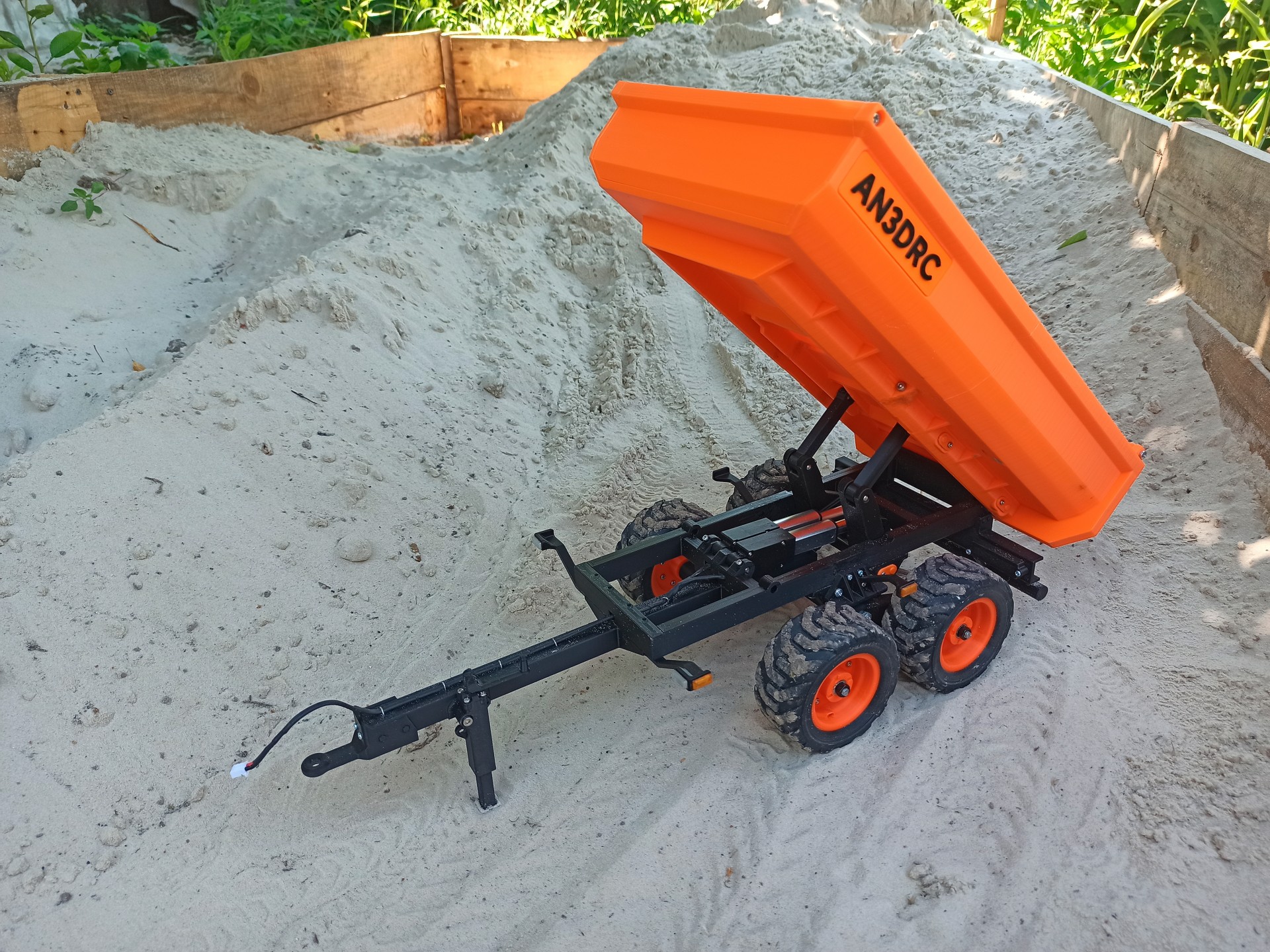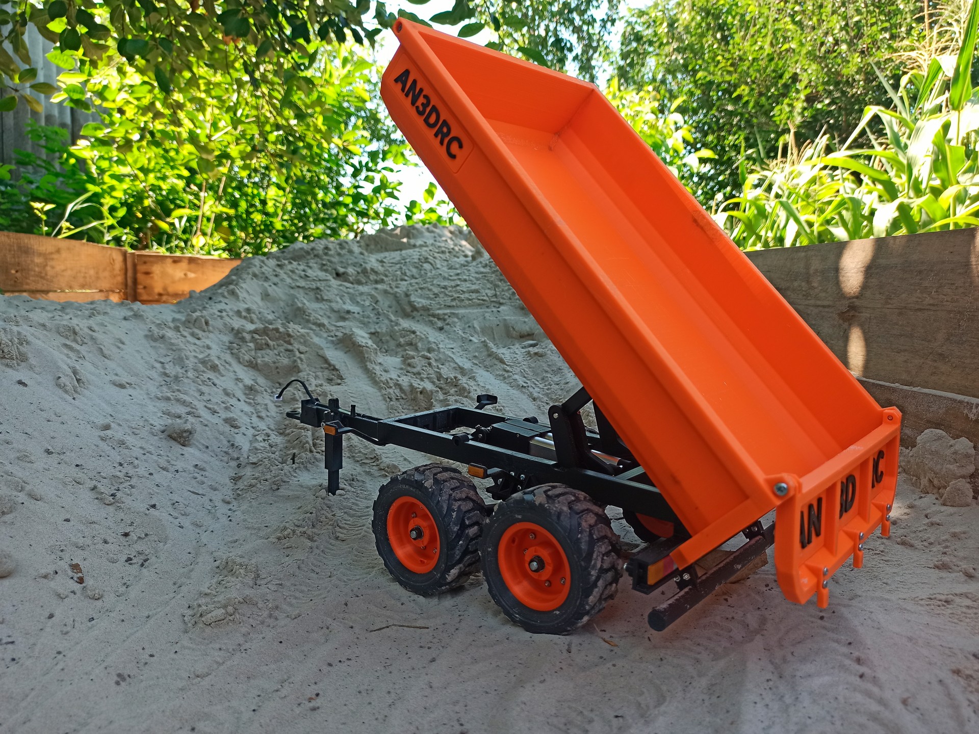 3D Printed 2 Axle RC Dump trailer in 1/8.5 scale